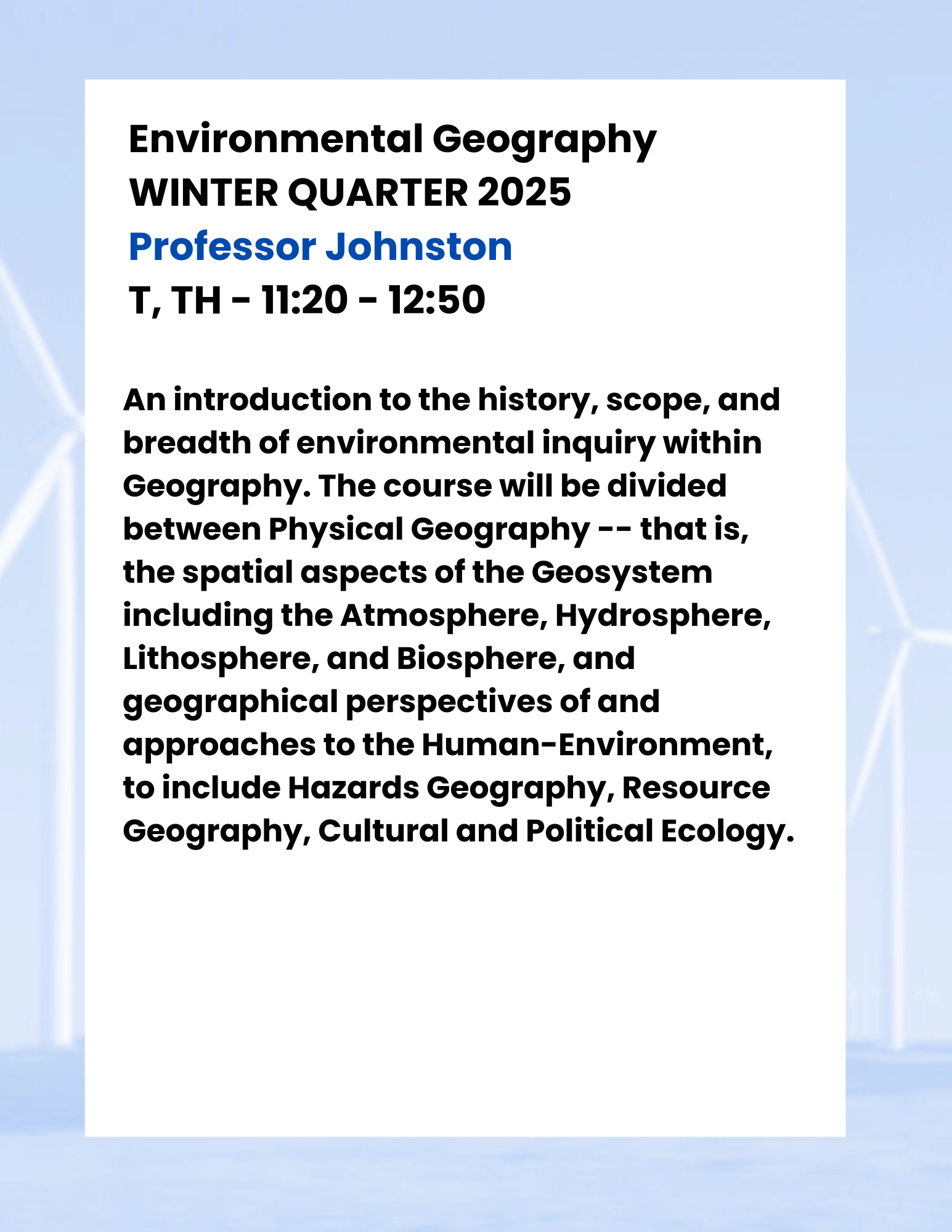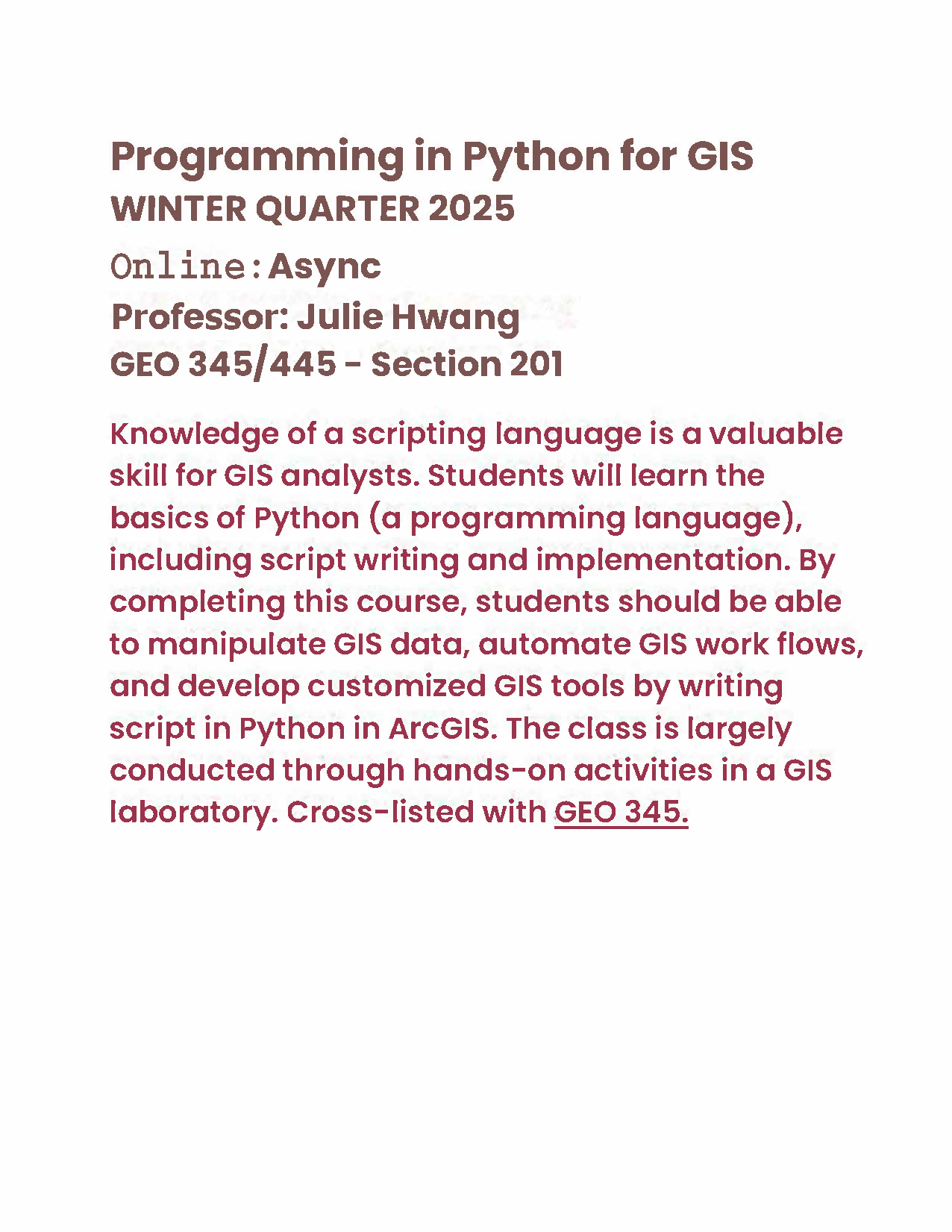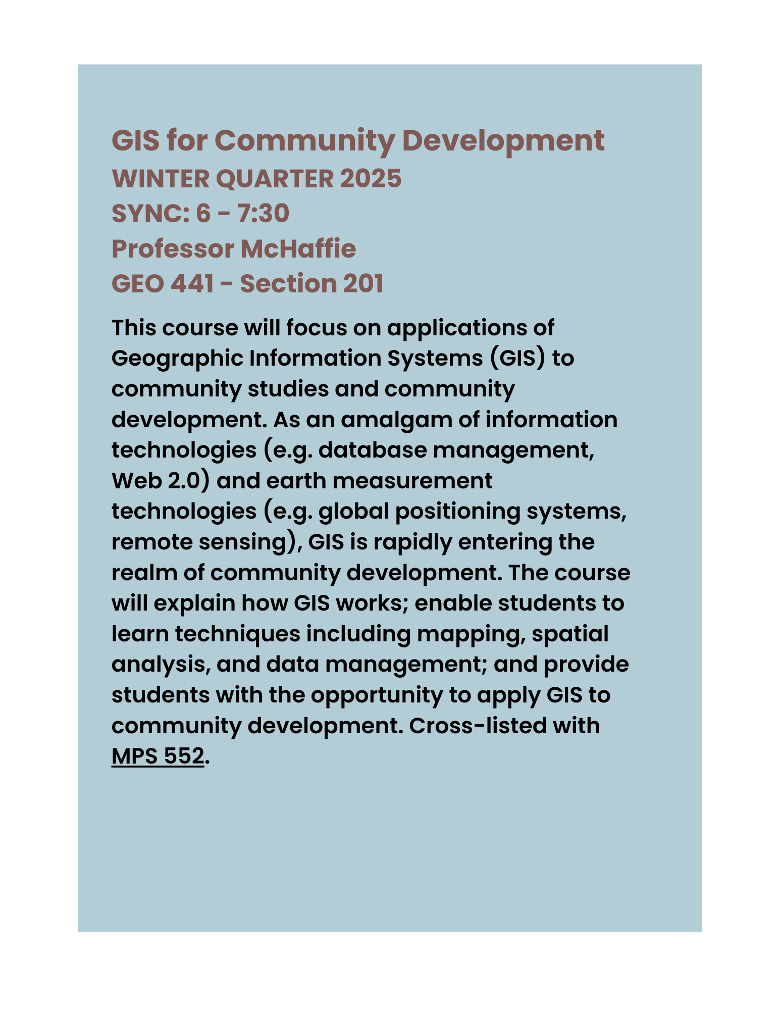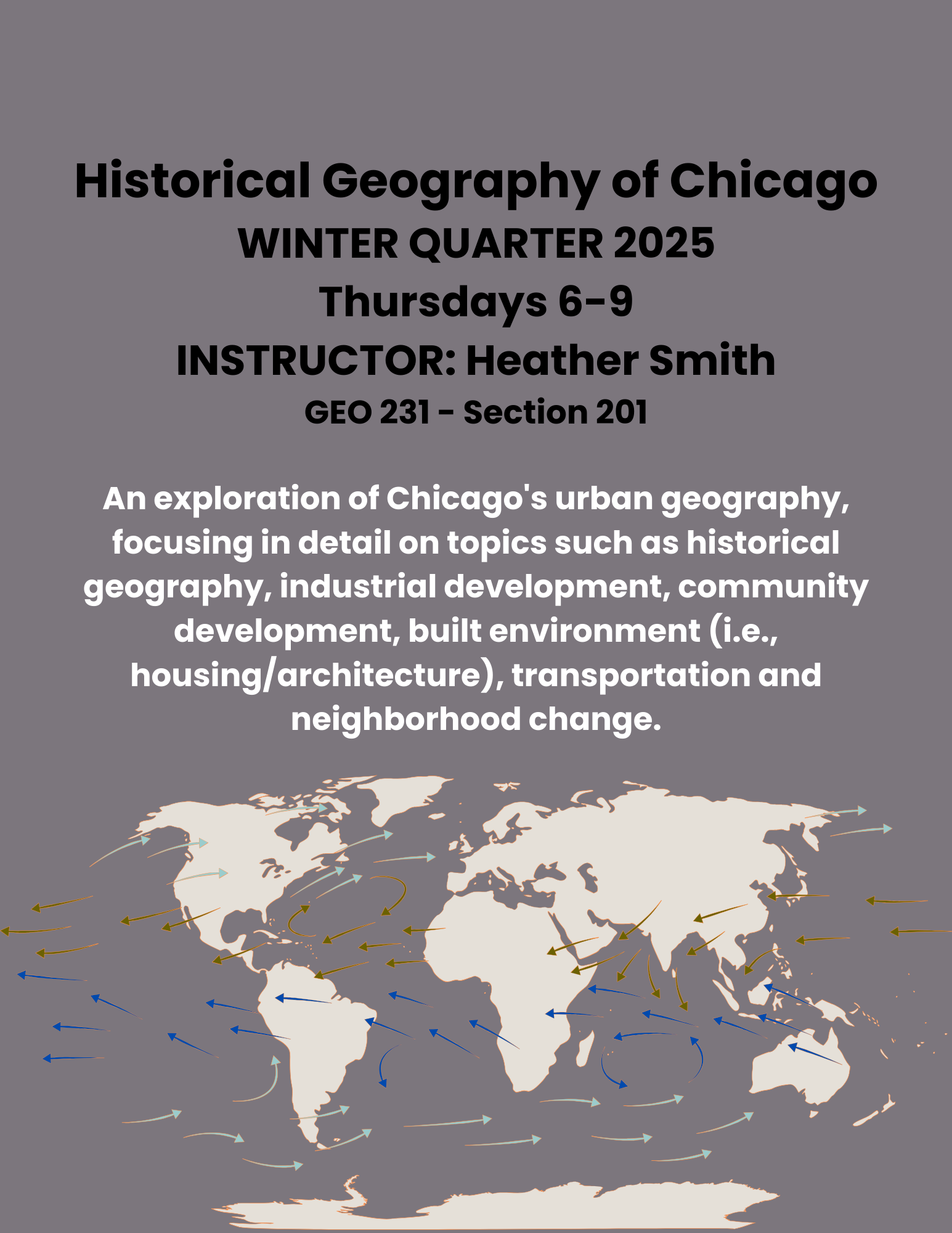 Please note that a message of “No results were found for the selected search criteria” may indicate that the course is not offered in the selected term or has not yet been scheduled. A complete list of Geography courses and their descriptions can be viewed in the DePaul University Catalog.