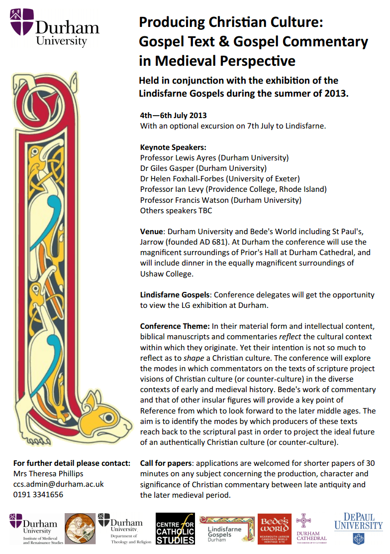 Held in conjunction with the Lindisfarne Gospels Exhibition, Durham University
