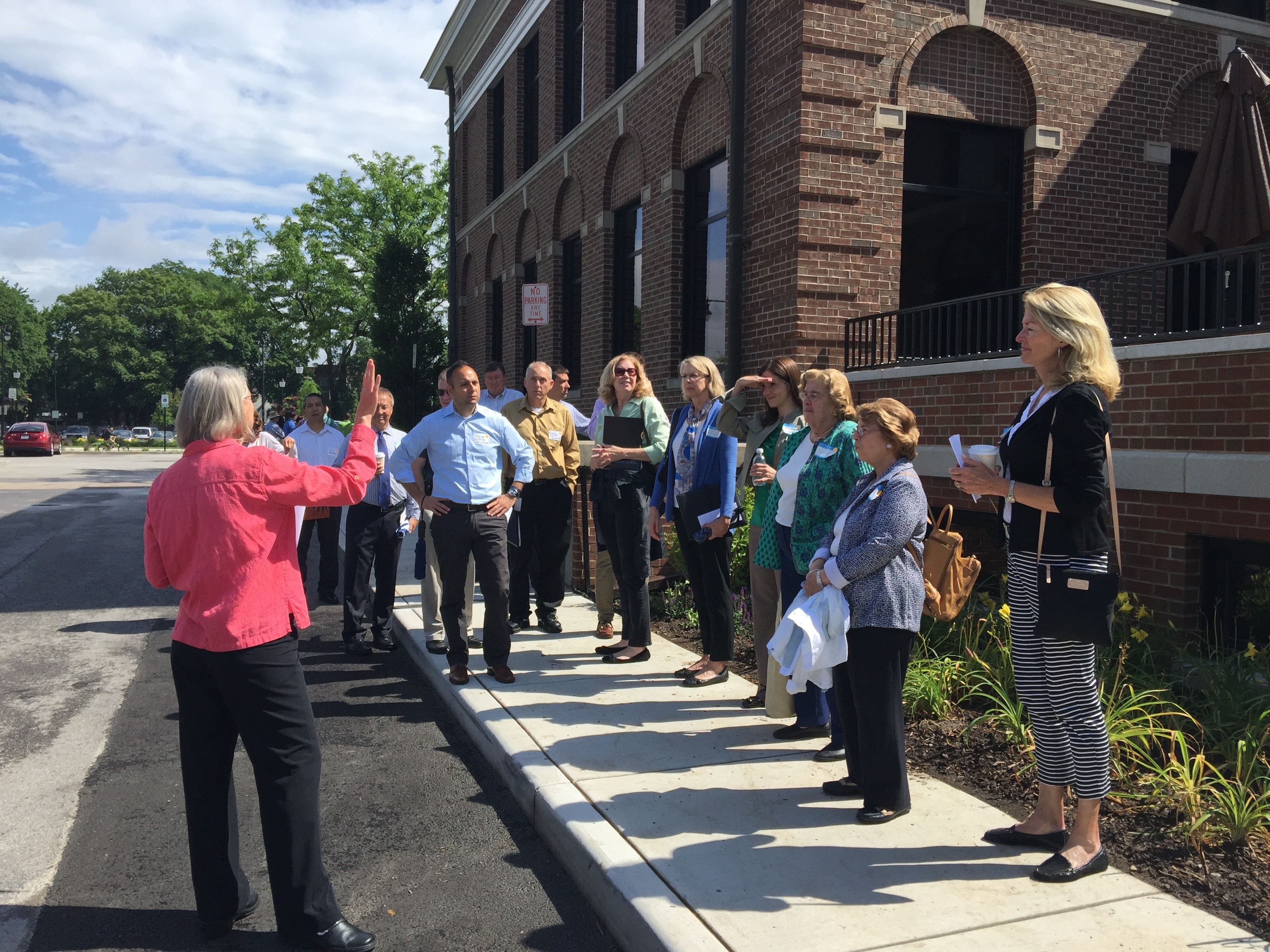 Urban Design Walking Tour in Downtown Barrington (July 19, 2018) - The Village of Barrington hosted MDRN's 11th summer walking tour this July. The mobile workshop featured examples of community collaboration via public-private partnerships, restoration and preservation projects, and urban design review throughout the downtown area. The tour attended by over 50 municipal officials, architects, planners and students interested in urban design. The group met at 145 West Main Street (Barrington's White House) where a networking breakfast was followed by a historical overview of the town's redevelopment plan, and a walking tour through Downtown Barrington.