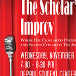 Join us as DePaul professors and a troupe of professional Chicago comedians go toe-to-toe, as the comedians perform improv and the professors are challenged to lecture extemporaneously on surprise topics. Led by improv comic Pete Parsons, the comedians will present six improvised scenes, showcasing their talent, quick minds, and true artistry... View flyer