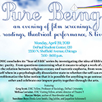 2250 N Sheffield Ave, Chicago7:00 p.m. - 9:00 p.m. The DHC concludes its "Year of Filth" series by investigating the idea of filth's putative opposite: purity. From questions concerning what it means to adapt a work of art from an "original" to the relation between religious ecstasy and narcotic euphoria, from wondering if you are most yourself hen in a psychologically dissociative state to whether the self can even interrogate itself, we problematize the false notion that it is possible for anything to go untouched by what is other and celebrate our impure purity together through the arts.